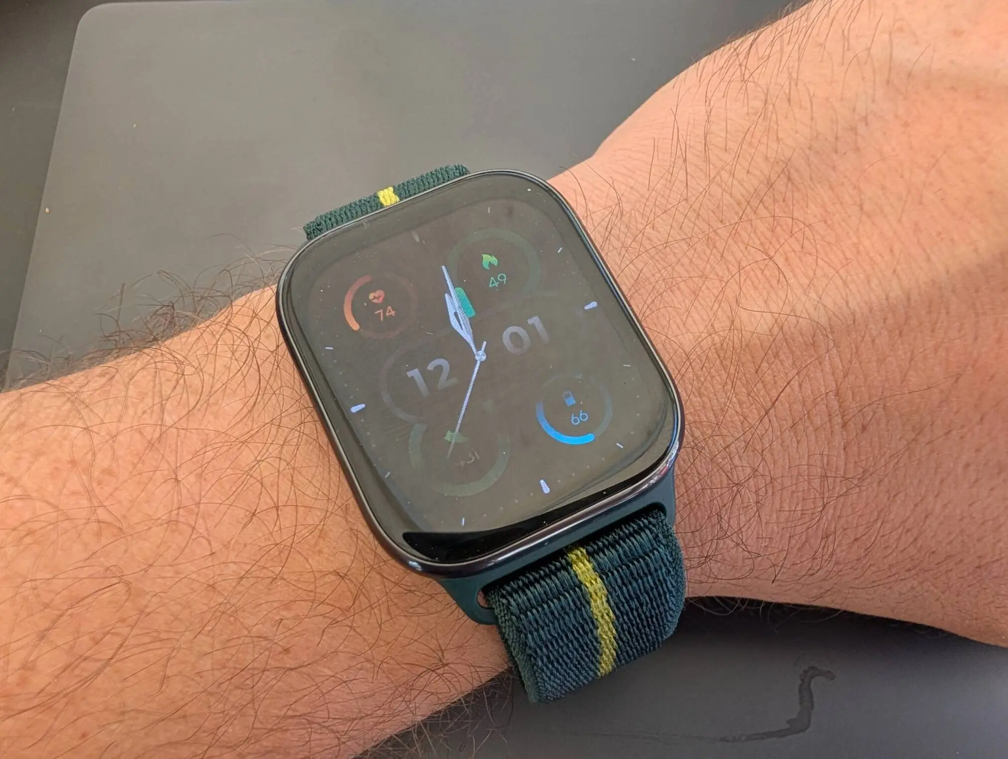 Depende do gosto. O formato quadrado maximiza área útil de ecrã para widgets e textos, e o peso muito baixo torna-o confortável em treinos longos. Por outro lado, quem prefere estética clássica circular ou materiais mais “premium” pode sentir falta de aço, cerâmica ou acabamentos de cor.