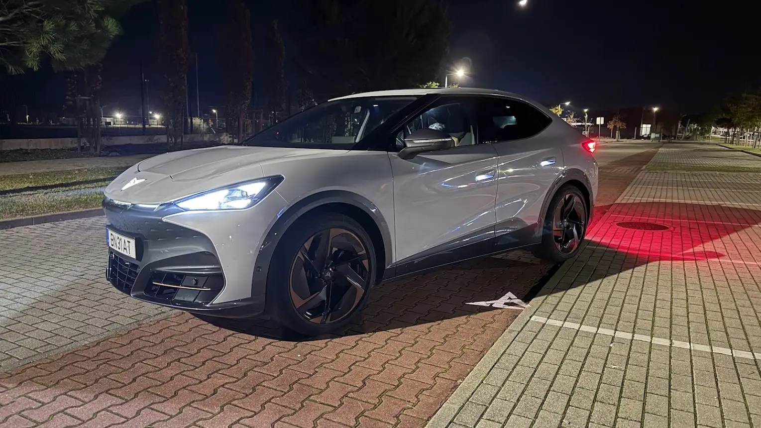 A assinatura luminosa triangular dos faróis Matrix LED é um dos elementos mais distintivos, funcionando quase como uma nova marca visual da Cupra. Na traseira, o logótipo iluminado e o conjunto de luzes contínuas conferem-lhe um aspeto futurista sem parecer excessivo. A escolha das jantes de vinte e uma polegadas acentua a sensação de desportividade e ajuda a sublinhar o carácter VZ, que se quer diferenciador. No geral, o Tavascan VZ é um carro que facilmente se destaca na paisagem automóvel atual.