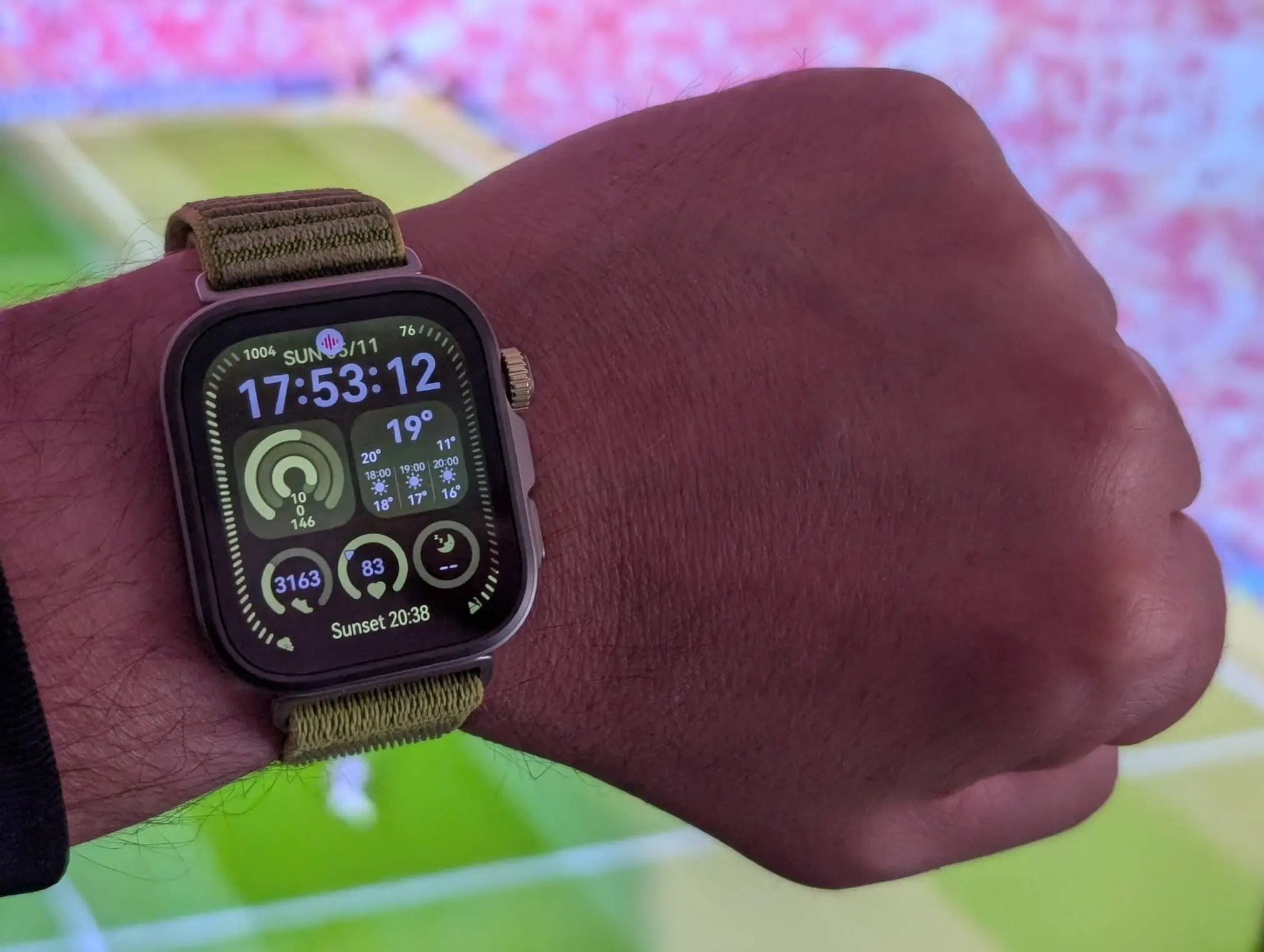 Se o visual importa — e convenhamos, num smartwatch importa sempre — então o FIT 4 Pro acerta em cheio. A bracelete em nylon entrançado (na versão verde) é confortável, seca rápido e resiste bem ao uso diário. Mesmo durante corridas intensas ou treinos no ginásio, manteve-se sempre firme e confortável.