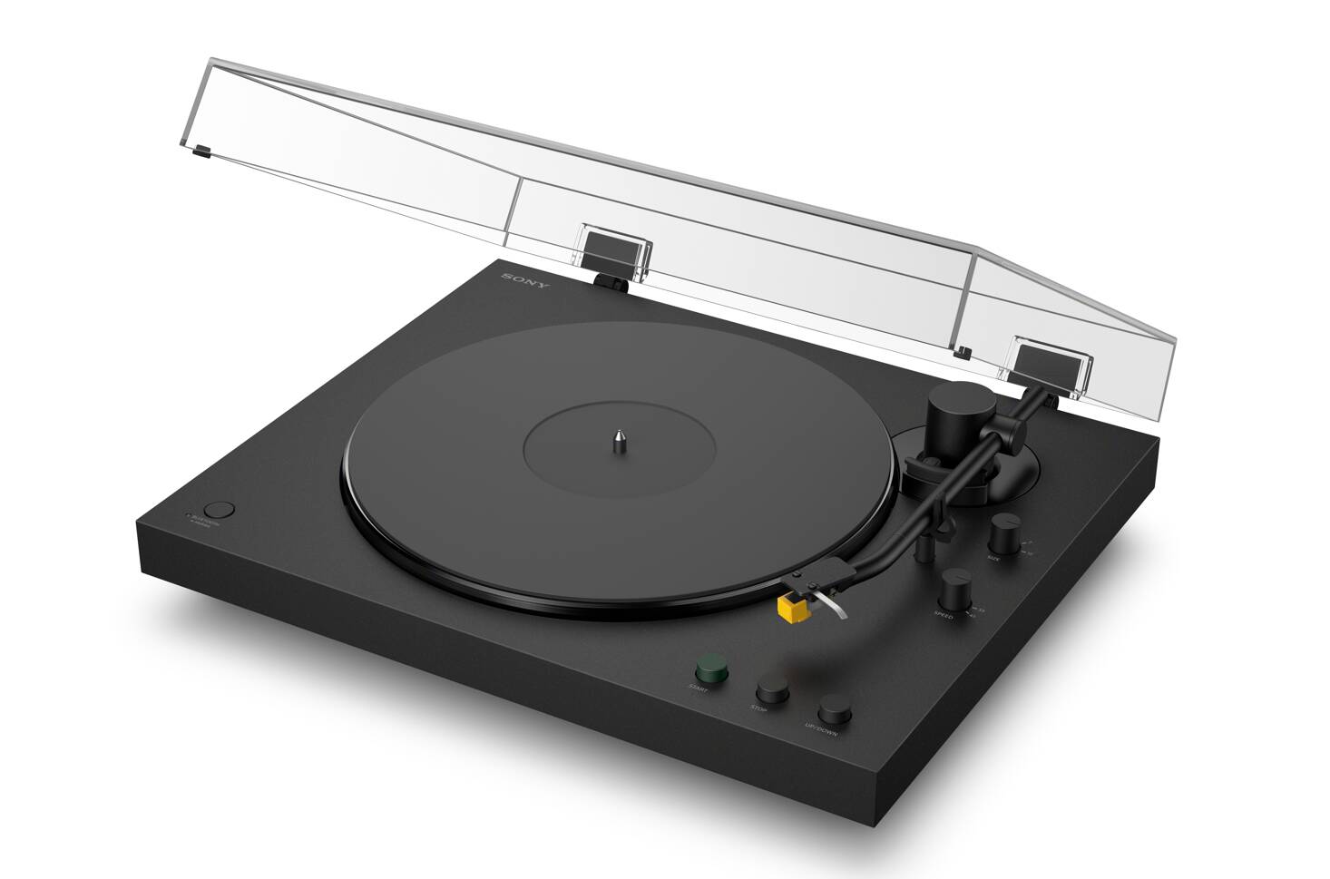 O PS-LX5BT é o “irmão” mais premium e nota-se no foco dado à construção e ao controlo de vibrações. A Sony fala num corpo rígido de uma só peça, braço em alumínio e um tapete de borracha pensado para ajudar na estabilidade. Traduzindo isto para linguagem do mundo real: menos ruído parasita, melhor seguimento e mais consistência quando se está a ouvir com atenção.